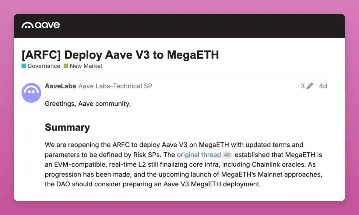 在Aave Labs 提出一項在MegaETH 上部署Aave V3 的DAO 提案的幾天后,相關討論隨即展開。