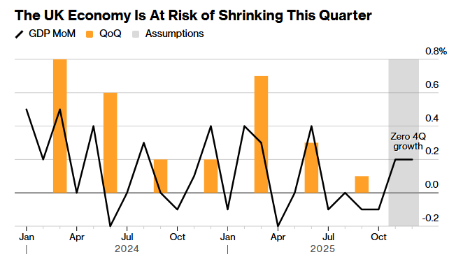 自上次会议以来出现了一系列悲观的经济信号后,英国央行可能会下调对2025年第四季度的增长预期。