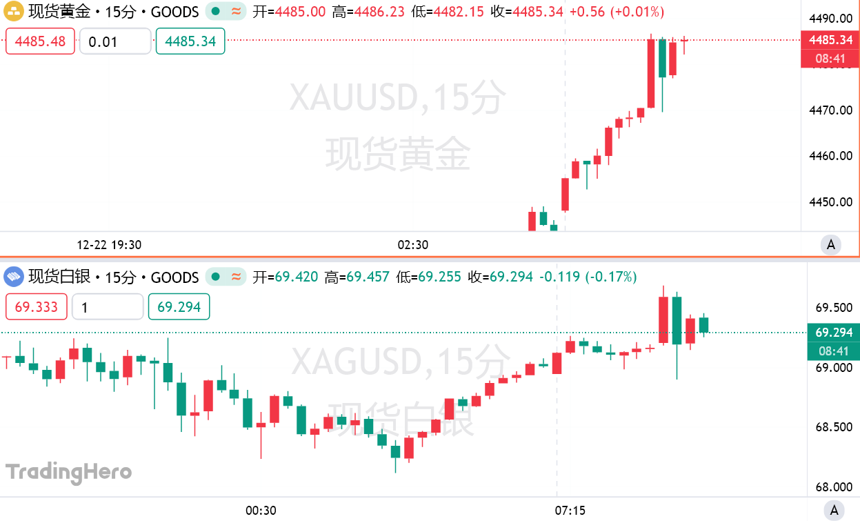 周二,金价首次突破每盎司4480美元,此前一个交易日上涨2.4%,创下一个多月来的最大单日涨幅。交易员押注美联储明年将再次降低借贷成本,这将创造一个有利于非生息资产(如贵金属)的低利率环境。