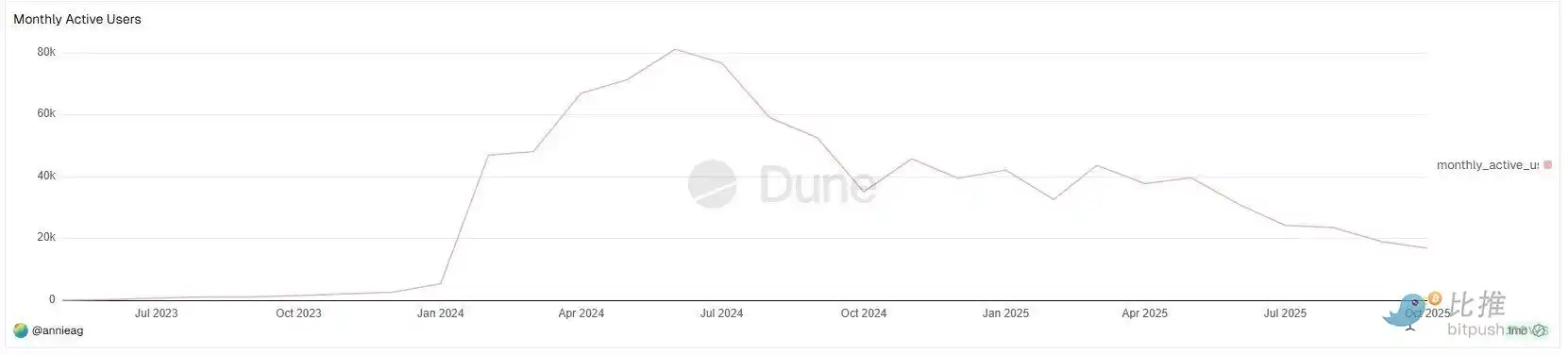 從2024 年下半年開始,月活數據出現明顯回落,並在隨後一年呈現震盪下行趨勢: