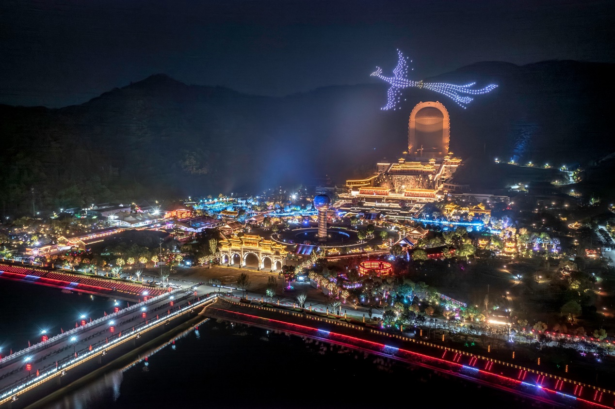 圖註:龍飛鳳舞無人機表演。